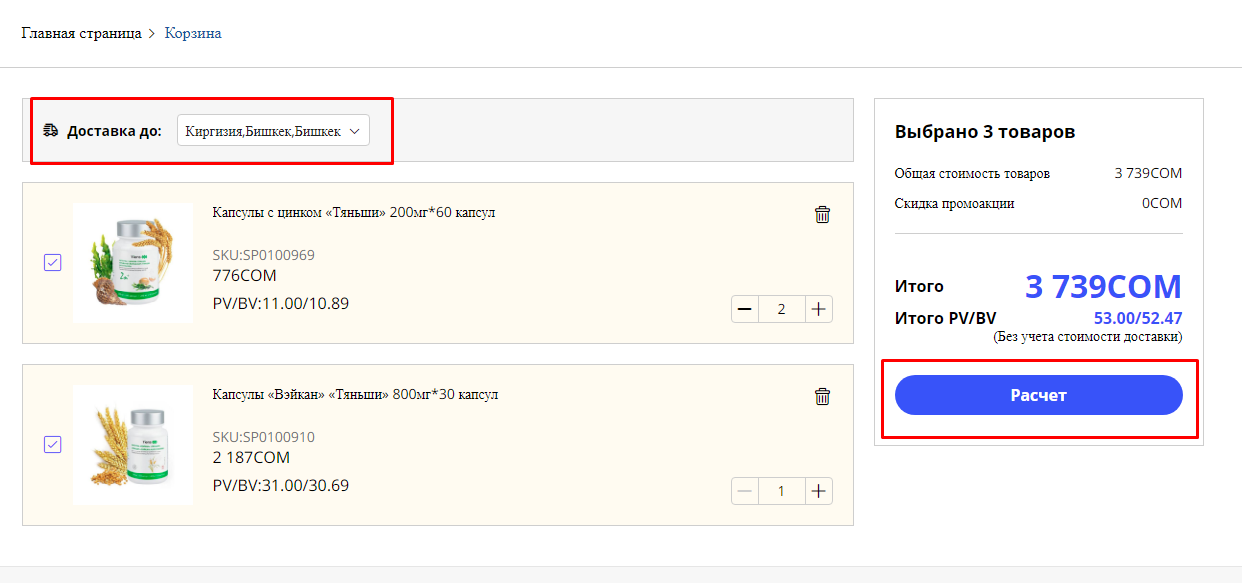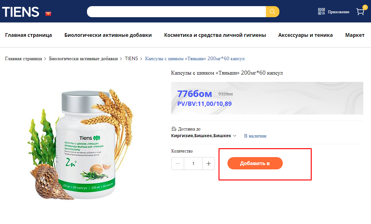 Добавить продукцию в корзину
